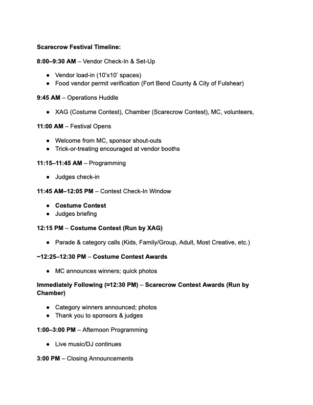 Get ready for a spooktacular time at the Fulshear Regional Chamber of Commerce's Scarecrow Festival on October 25, 2025, at Fulshear High School!